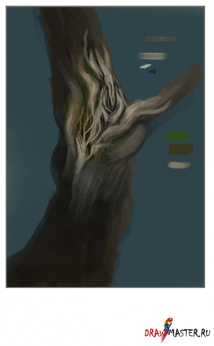 Я продолжил работать с корой, а также прошелся текстурной кистью по уже готовым участкам рисунка.
