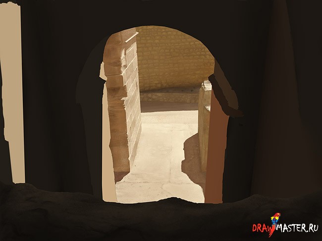 Мы уже почти на стадии завершения. Набросаем немного светотени на правой стене прежде чем перейти к деталям.