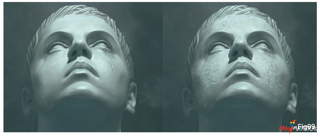 С текстурами лучше быть аккуратным и не переборщить, однако для данного урока я немного вышел за эти рамки. На рис. 09 видно, как изображение выглядело до и после применения текстуры.