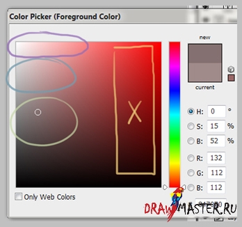 Если вы рисуете просто для удовольствия, ради бога, не берите за основу цвета, которые я выделил и перечеркнул. Это зона крайне насыщенных цветов, т.е. они очень сильно выделяются, т.е., если вы возьмете для теней какие-то другие оттенки, они будут смотреться очень тускло по сравнению с основными цветами.